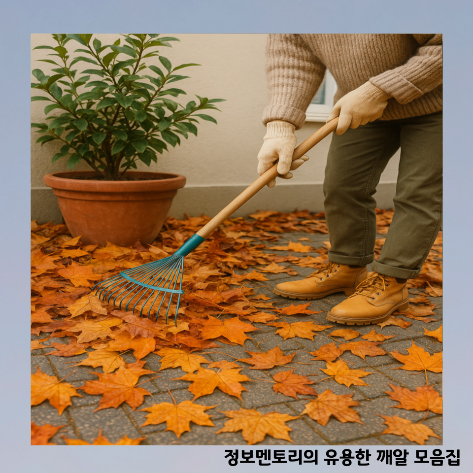 2️⃣ 마른 낙엽 모으기: 빗자루나 집게로 모아 건조시켜 퇴비용으로 활용 가능.