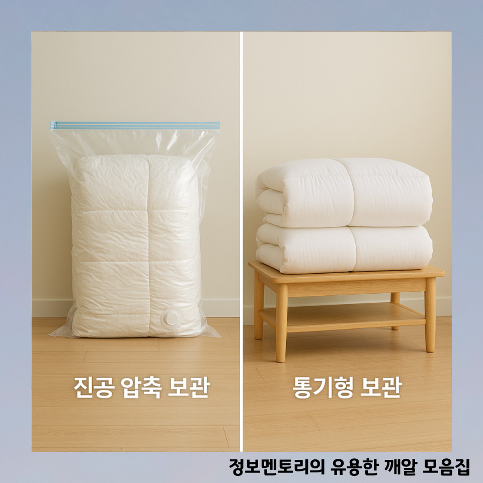 많은 분들이 진공팩을 사용하지만 두꺼운 겨울 이불은 통기성 있는 보관이 훨씬 안전해요.