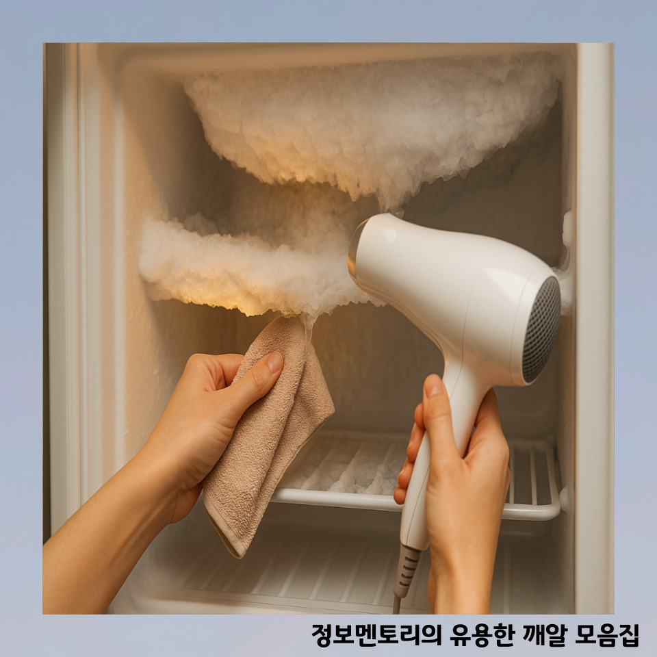 냉장고 성에를 제거할 때 절대 드라이기만 쓰면 안 돼요.