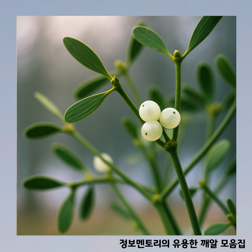 ‘겨우살이’는 단순히 예쁜 장식용 식물이 아니라, 유럽에서는 행운·사랑·건강의 상징으로 여겨지는 의미 깊은 식물이랍니다 💚