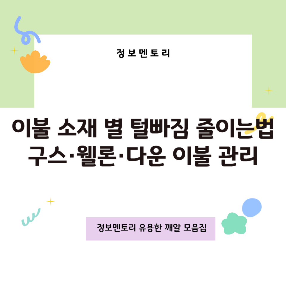 오늘은 구스·웰론·다운 이불의 차이를 간단히 정리하고, 털빠짐을 줄이면서 오래 쓰는 방법까지 자세히 정리해볼게요.