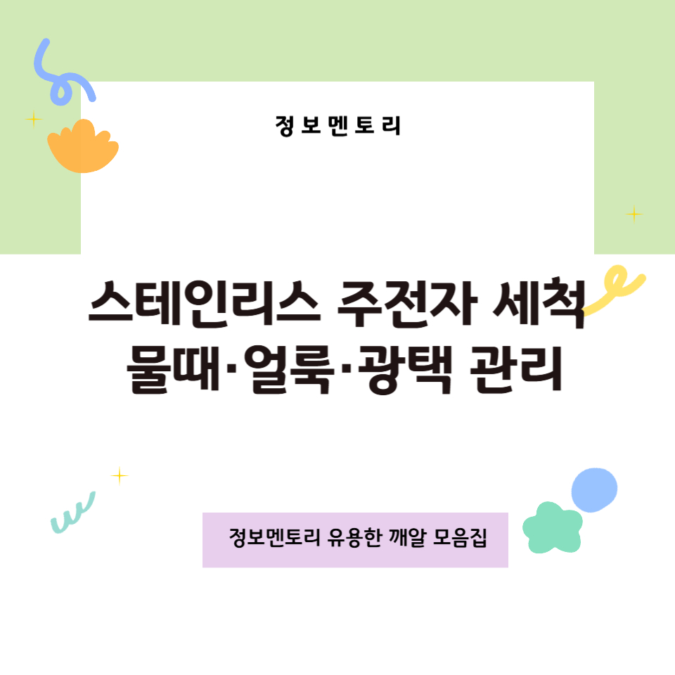 스테인리스는 부드럽게 닦고 물기 없이 마무리하는 과정이 전체 관리에서 가장 중요한 부분이에요.