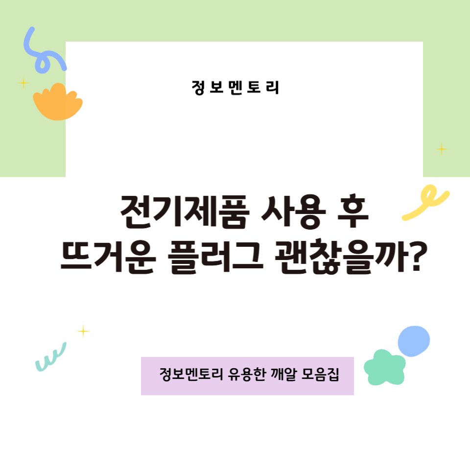 특히 전기히터, 전자레인지, 전기포트, 드라이기처럼 순간적으로 전력 사용량이 큰 가전은 사용 직후 플러그가 약간 따뜻해질 수 있어요.