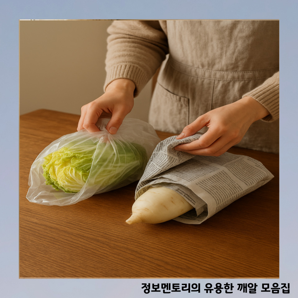 1. 배추보관법 – 신문지로 감싸 수분 지키기