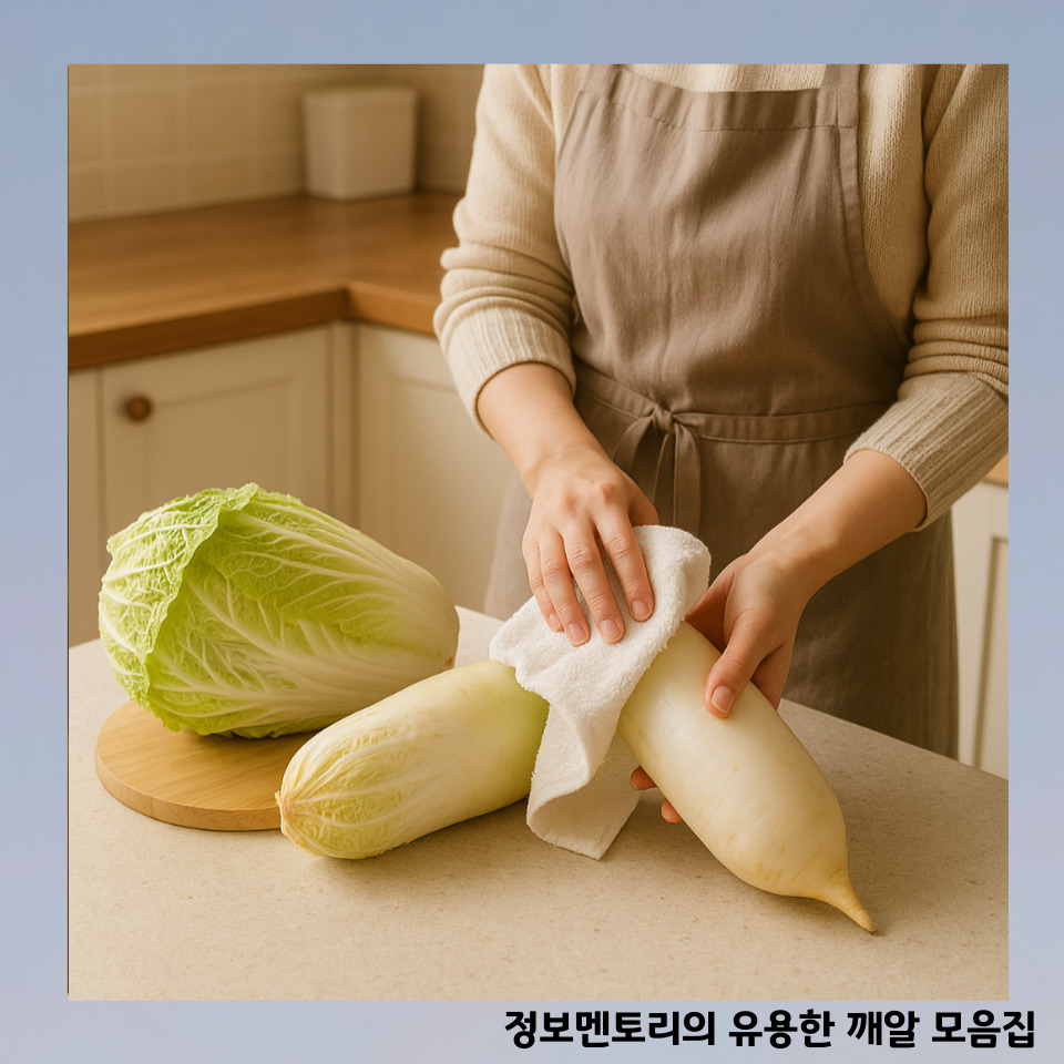 1️⃣ 무를 깨끗이 씻은 뒤, 물기를 완전히 닦기