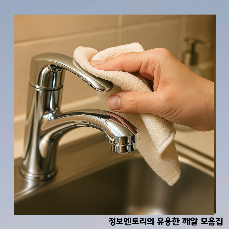 2️⃣ 수전, 싱크볼, 수도꼭지 주변 문질러 닦기
