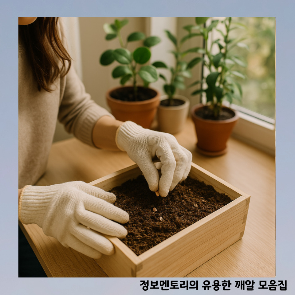 저는 기존에 있던 화분 흙 위에 새 상토를 덮어준 뒤 씨앗을 뿌렸어요.